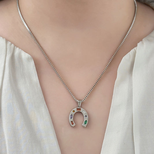 Gus Horseshoe Gem Necklace (Silver)