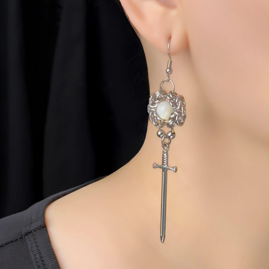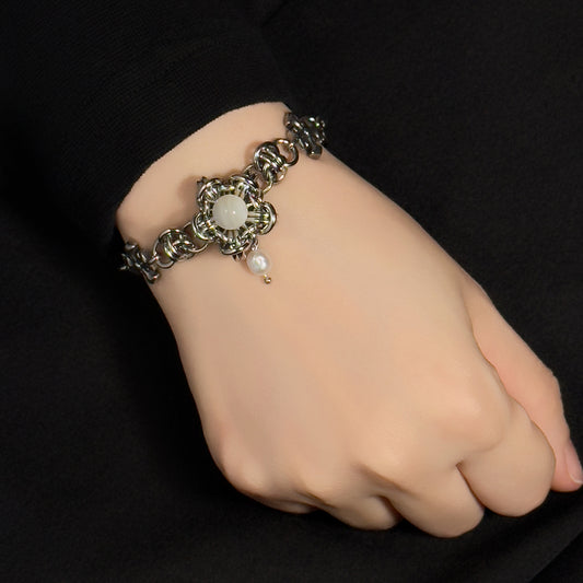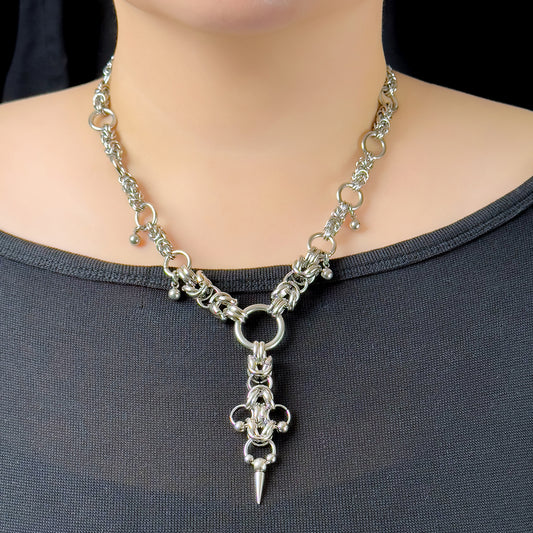 Dillion Chainmail Clover Pointy Necklace - Silver