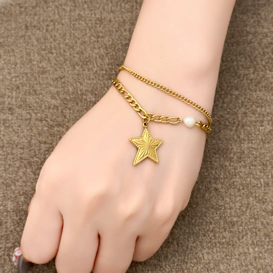 Francesca Clear Beads Hybrid Chain Bracelet - Gold
