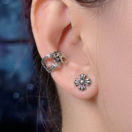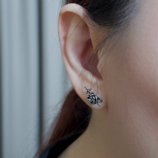 Flint Rose and Sword Stud Earring - Silver (Single)