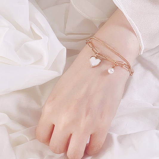 Love Shell Drop Chain Bracelet - Rose Gold