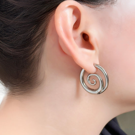 Lucian Spiral Hoop Earring - Silver