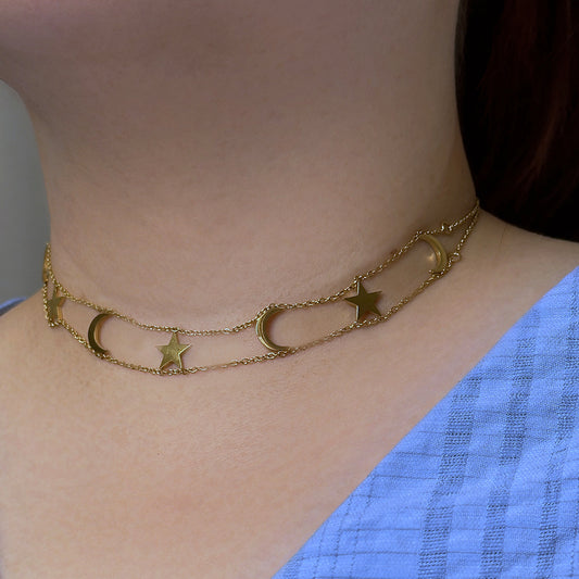 Luna Moon and Star Choker Necklace