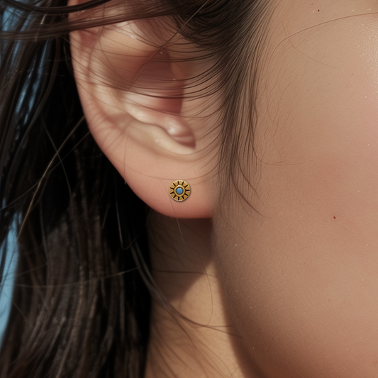 Amory Turquoise Sun Flat Back Earring - Gold (single)