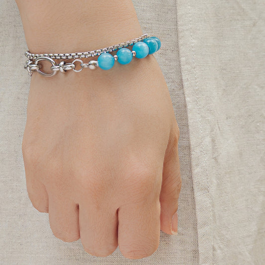 Archer Blue Tiger Eye Beads Hybrid Chain Bracelet