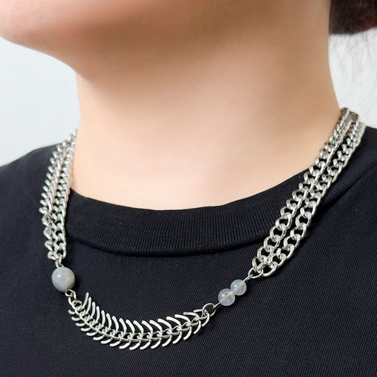 Avan Moonstone Fish Bone Hybrid Chain Necklace
