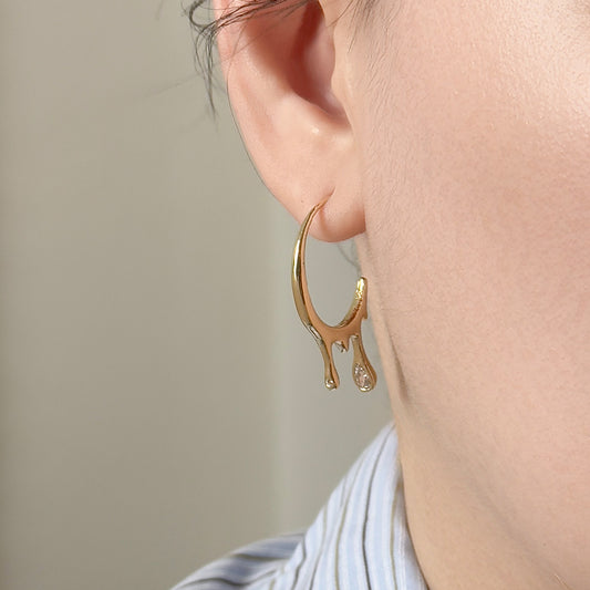 Bailey Melt Rhinestone Hoop Earrings - Gold