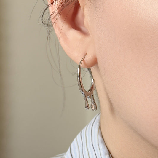 Bailey Melt Rhinestone Hoop Earrings - Silver