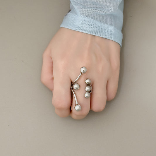Nasira Layered Moon Star Sun Ring - Silver Black