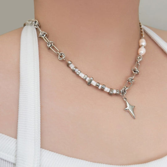 Genro Hybrid Pearl and Shell Star Necklace