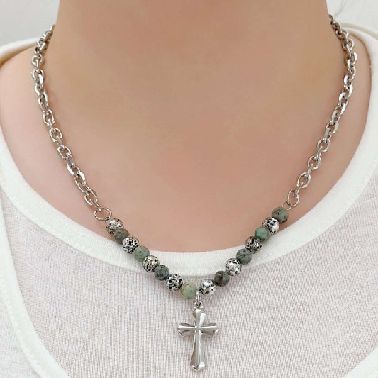 Fabio Hybrid Bead Cross Necklace (Green)
