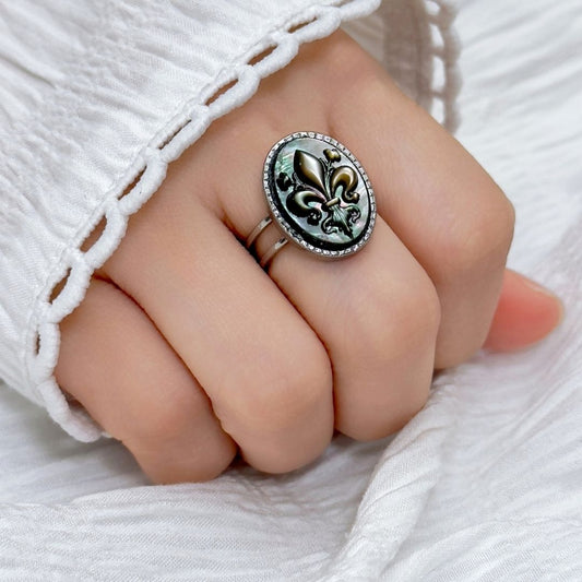 Ginzo Black Shell Ring (Fleur de Lis)