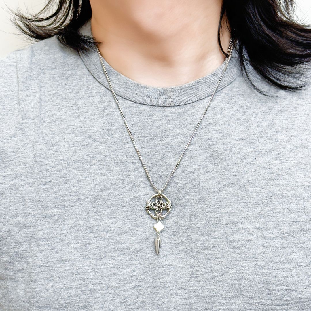 A clean silver-tone necklace with a symbolic quatrefoil centerpiece and seashell clover for daily styling.